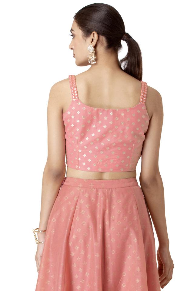 Buy Indya Pink Shraddha Kapoor For Indya Coral Brocade Mirror Strap Crop Top Shoppers Stop